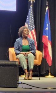 Ya en la tarde, Mayra Santos Febres cautivó a todos y arrancó aplausos con su charla «Los imaginarios de la piel- cómo escribir desde estos tiempos de la raza».